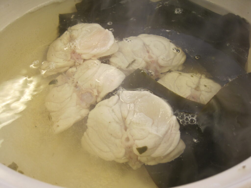 フグ鍋の手順があるらしく、昆布だしからフグの切り身からのだしが出ています。