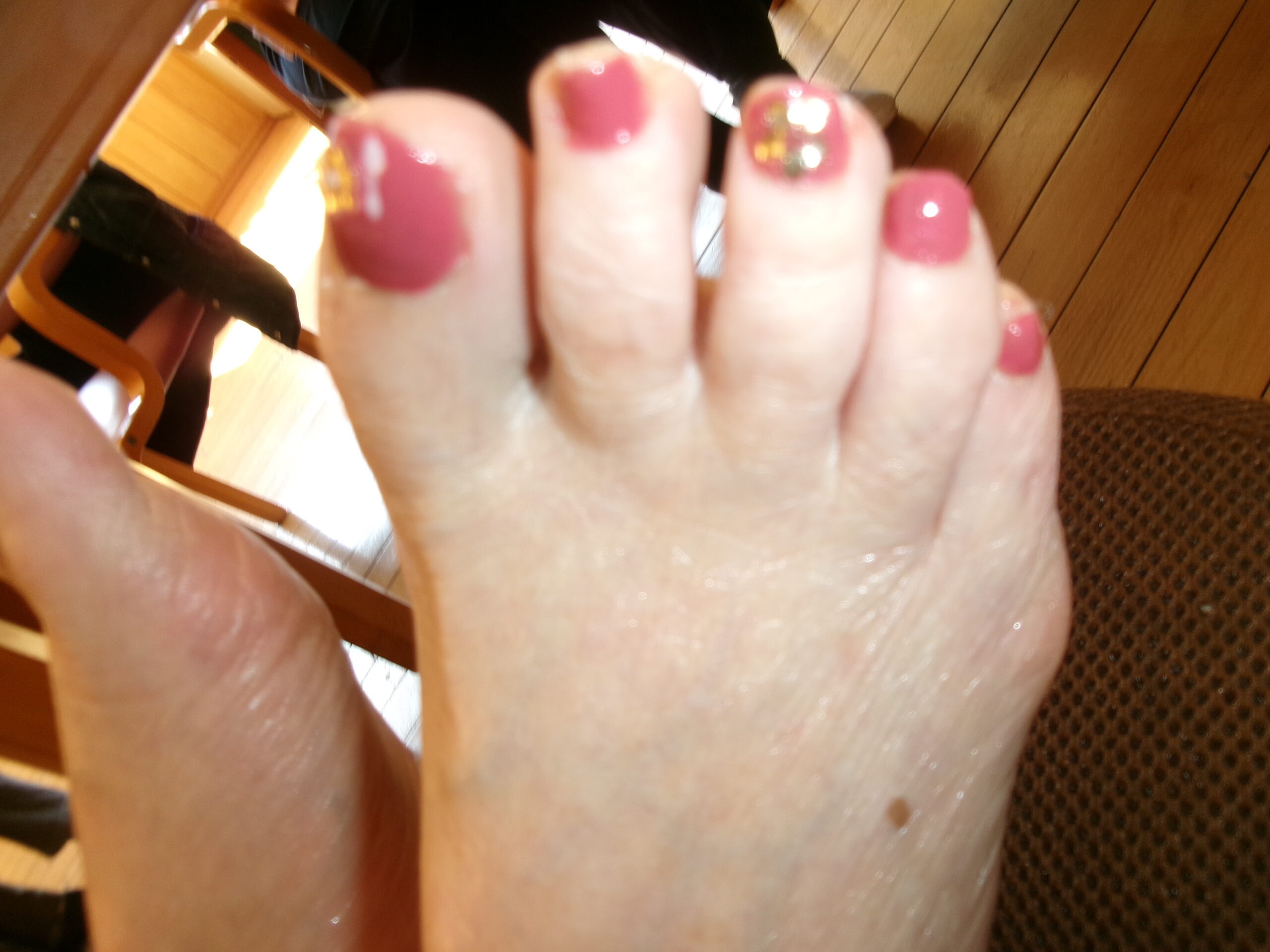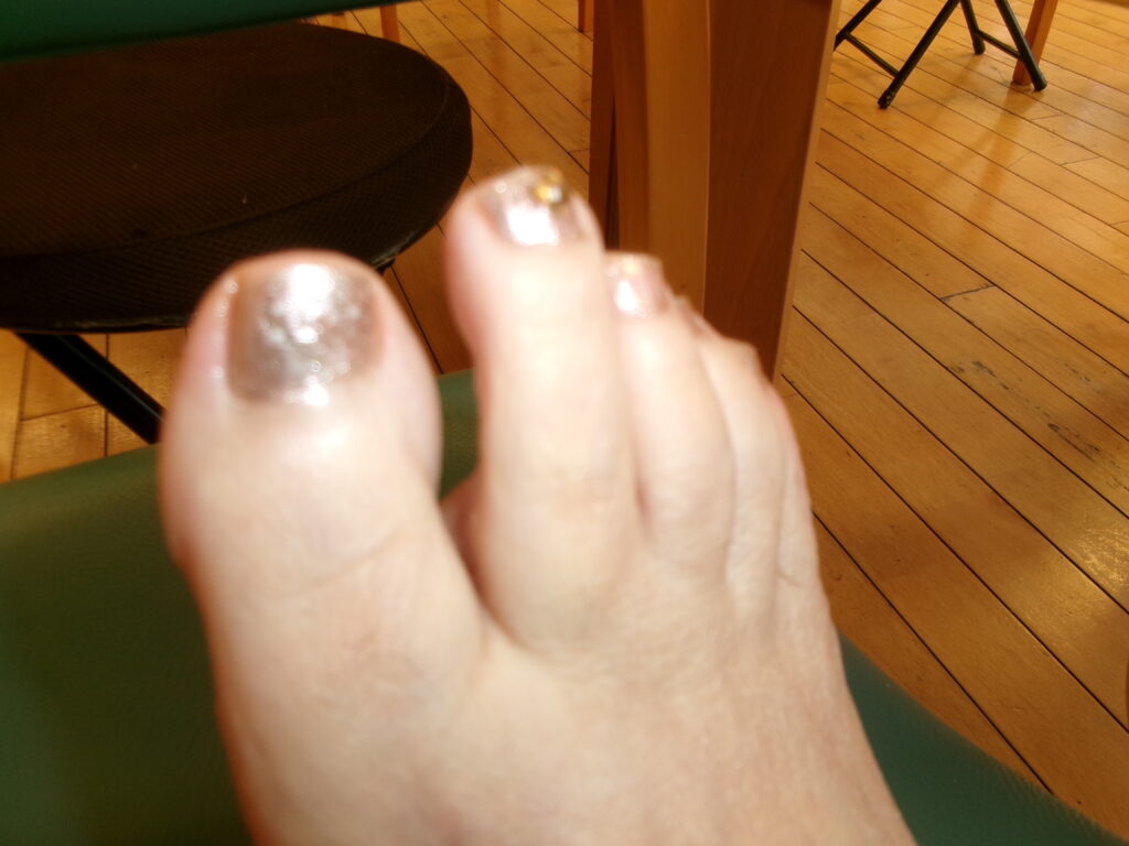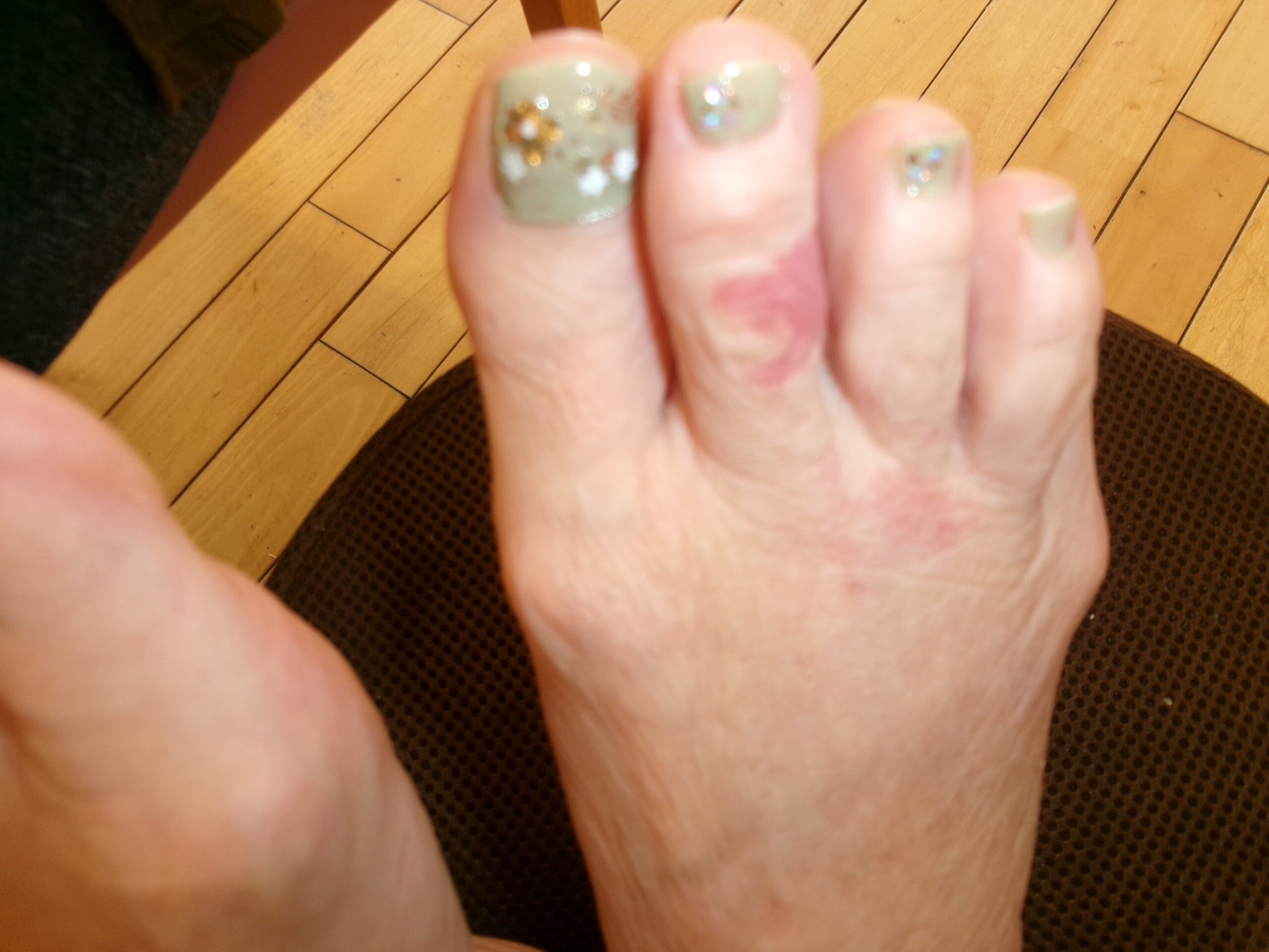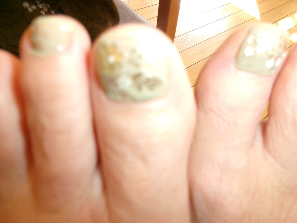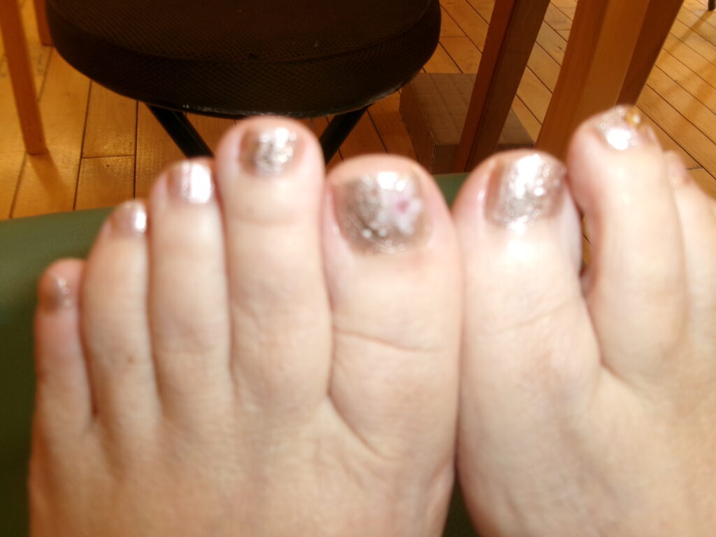 入浴の際、ペディキュアを見て