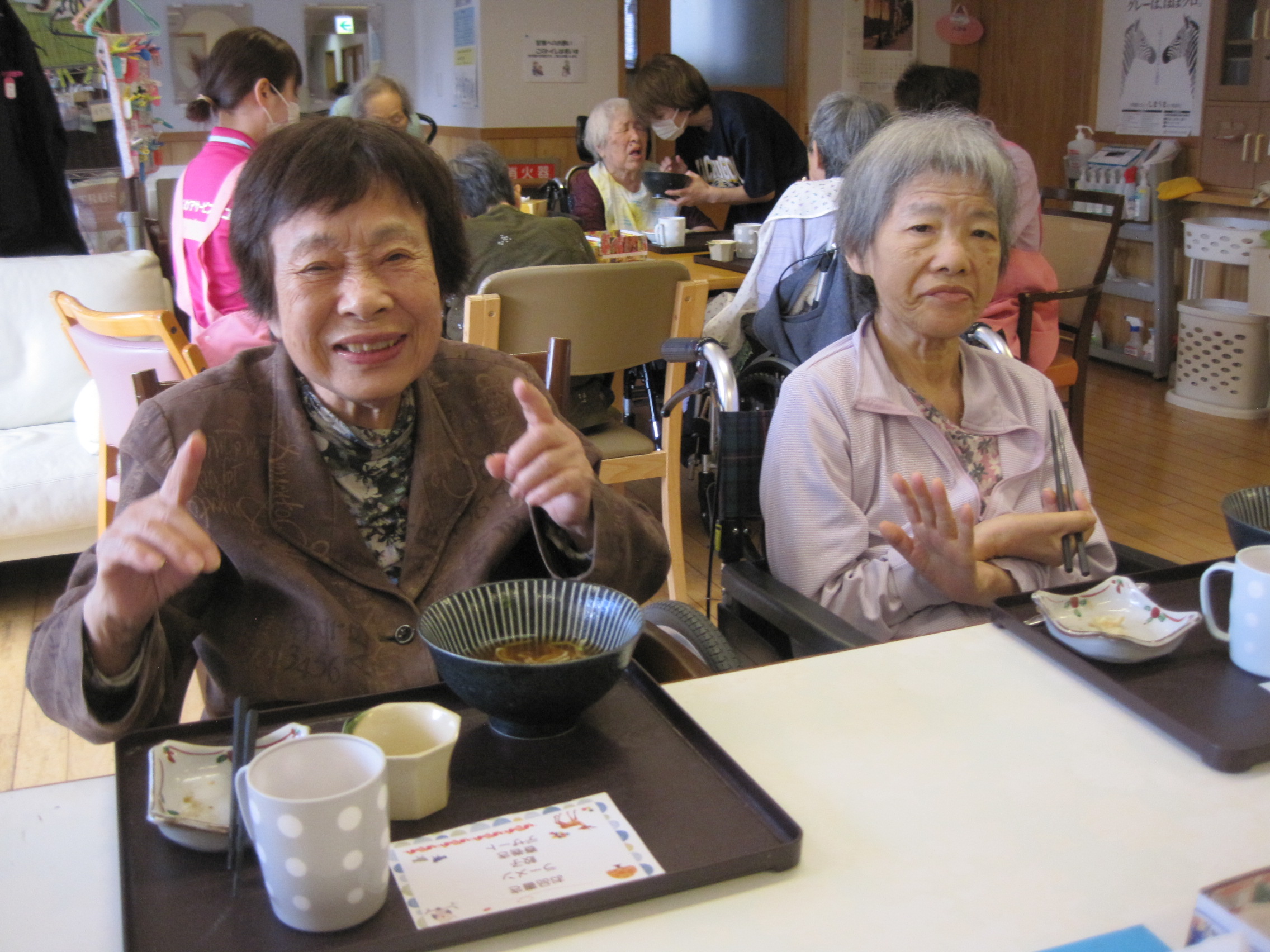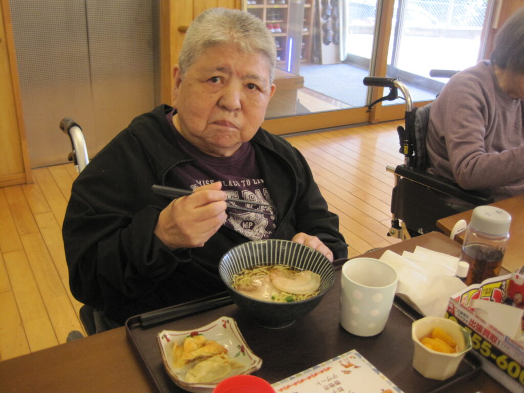 2025年11月11日 / 最終更新日 : 2025年11月11日 米川のんびり村 【ブログ】のんびり村米川 ラーメンの日・・・!(小規模多機能) こんにちは! 小規模多機能 のんびり村米川です(^^)/ 少し投稿が遅くなりましたが・・・先月、ラーメンの日がありました✨ 醬油と白湯の2種類から、好きなものを選んでみんなで食べました! 我らが施設長も作ってくれましたよ~(^^♪ いただきまーす♪ 替え玉をした方もおられました 美味しかった~!・・・の、笑顔いただきました またみんなで食べましょうね☺ 寒くなってきたので、温かくしてお過ごしくださいm(__)m