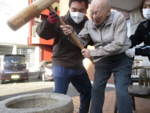 「わしは80まで餅をつきよったけど、久々にやるとやっぱり楽しいなコレ!!」