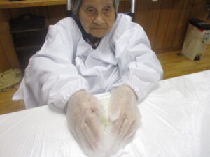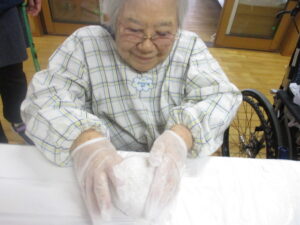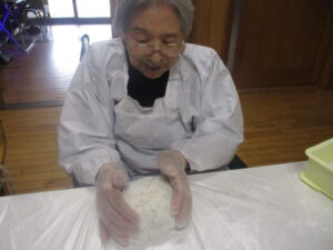 餅つきの後は、餅を丸めていきます(*´▽`*)