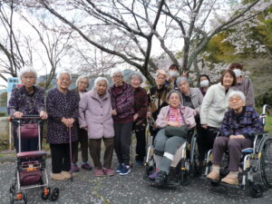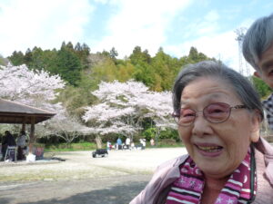 2026年4月9日 / 最終更新日 : 2026年4月9日 花岡のんびり村 【ブログ】のんびり村花岡 続 お花見日和🌸(介護付きホーム) 車に乗り込み、お出かけです。 お花見に行ってきまーす。 米泉湖公園から見下ろす桜並木🌸 私と桜、どちらがきれい? 見渡す限りの桜の風景で、みなさんの顔もほころんでいます。 足下に春の訪れ「つくし」 また、みなさんで行きましょうね~