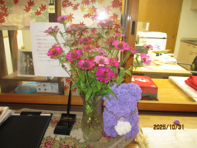 2025年10月31日 / 最終更新日 : 2025年10月31日 通津のんびり村 【ブログ】のんびり村通津 綺麗なお花🌺 I様のご家族様におかれましては、 いつもお気遣いありがとうございます<m(__)m> 事務所前が華やかになります。 今月は、百日草🥰の花をこんなにもたくさん 持ってきてくださいました 何とも豪華で華やか 😁 お花のいいかおりもしてきます 何だか心も癒されます お客様にも喜んでいただけてると思います。 I様のご家族様に感謝申し上げます<m(__)m> また明日ね✋